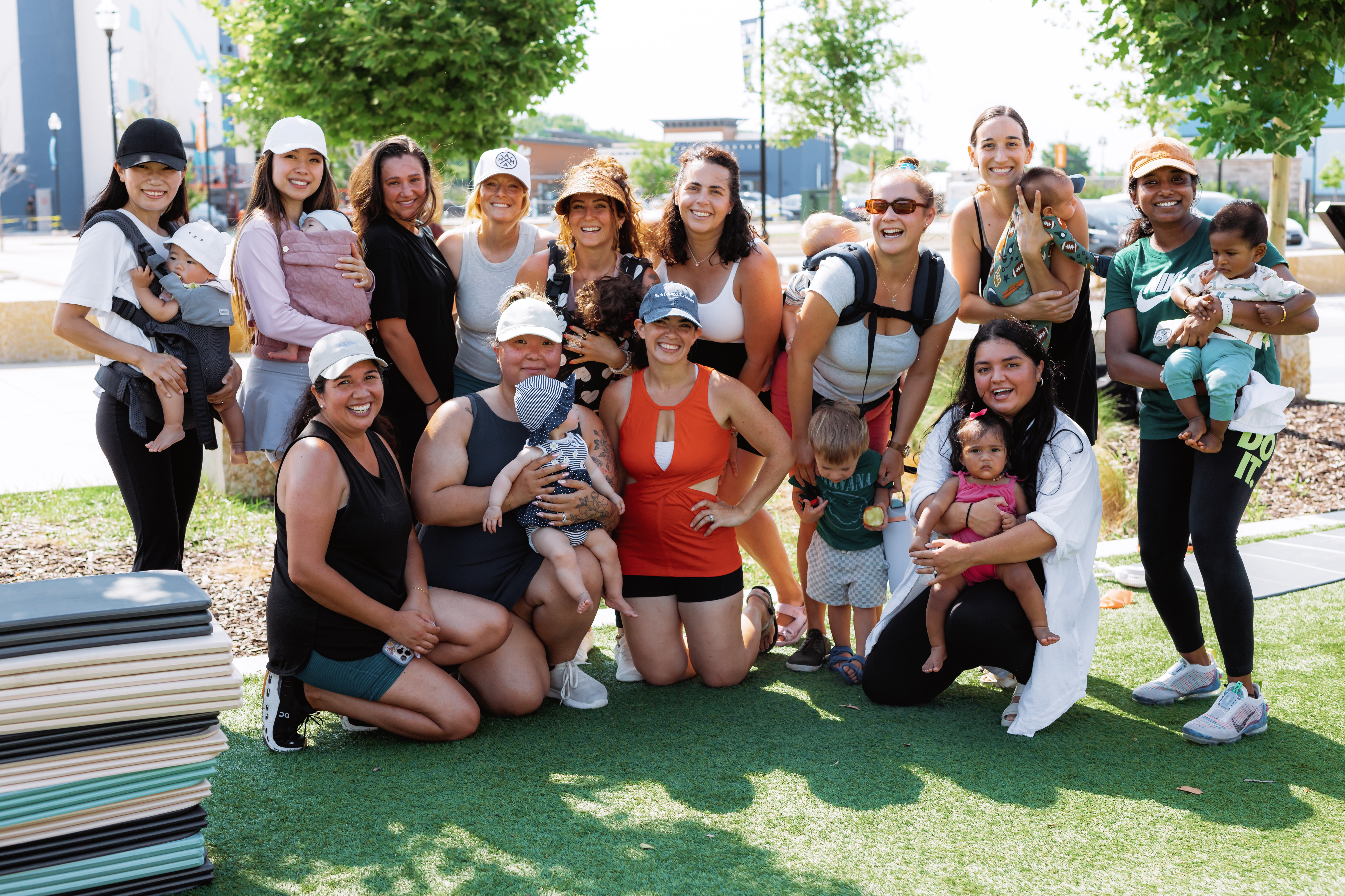 Short welcome + expectations (nothing here is mandatory). Share intention: Move. Grow. Together. Make name tags, share baby age, and one word/reason for this retreat.